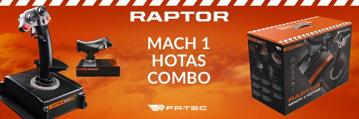 The Raptor Mach 1 HOTAS Combo combines the Mach 1 Flight Stick and Throttle, both are specially designed for use with a PC. The devices are compatible with most aviation games as well as other simulations.