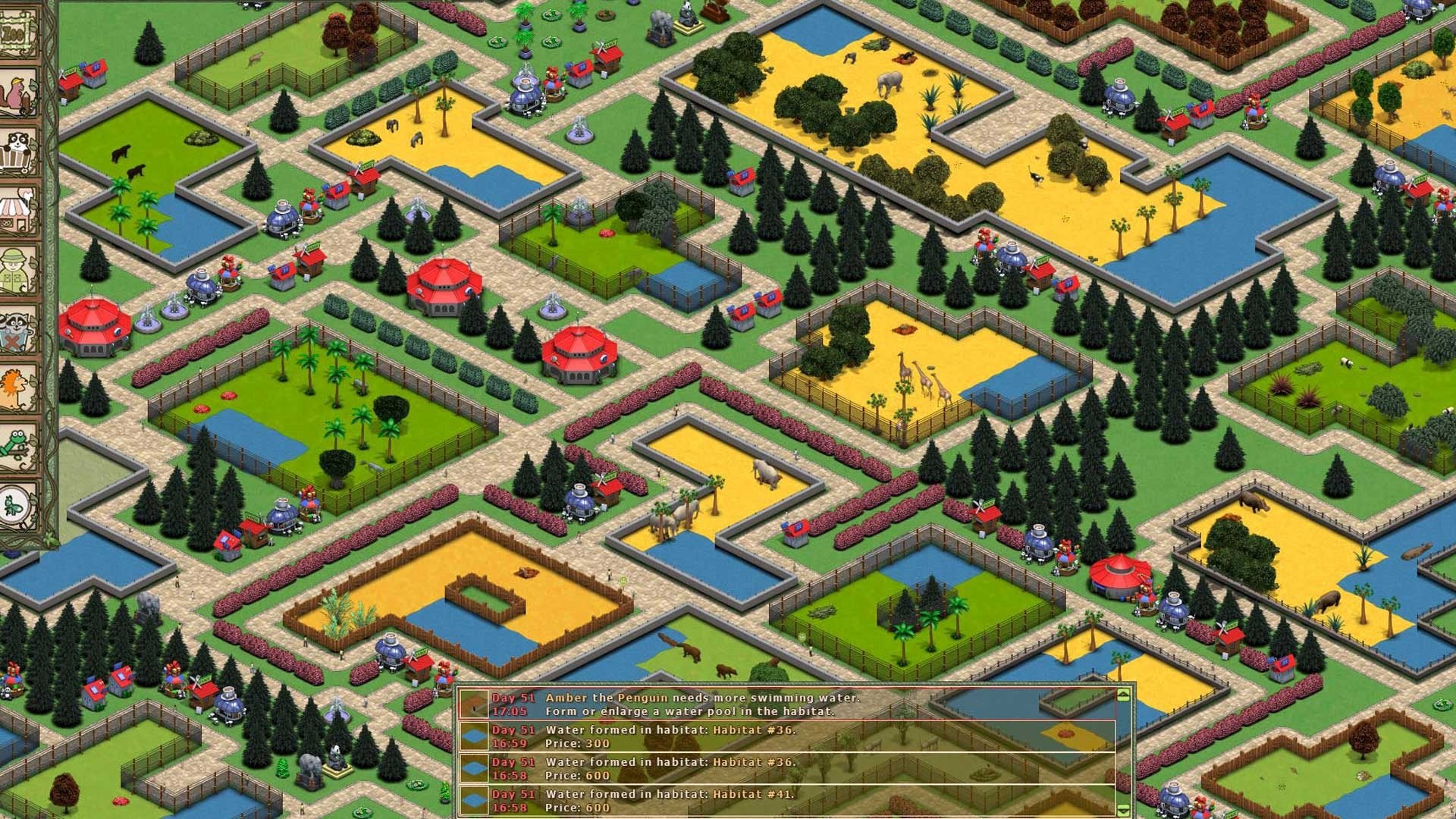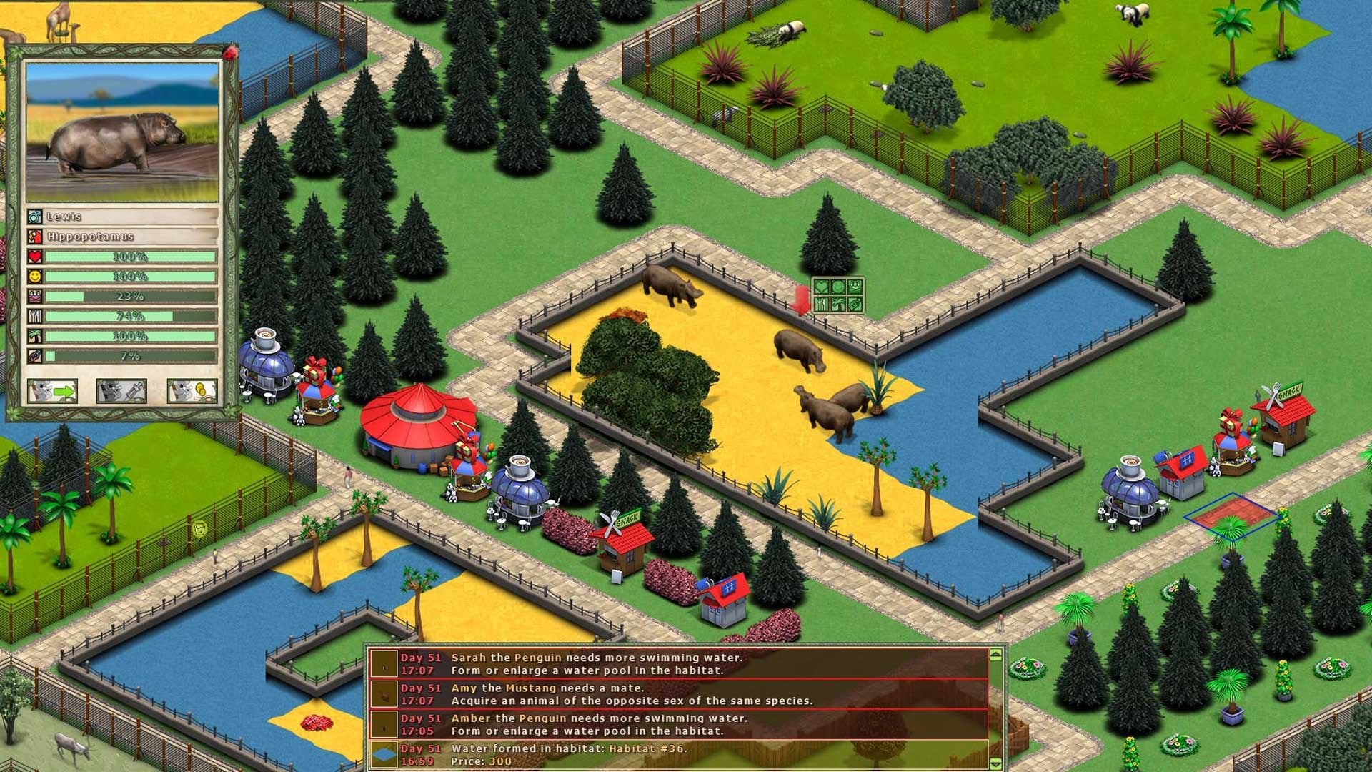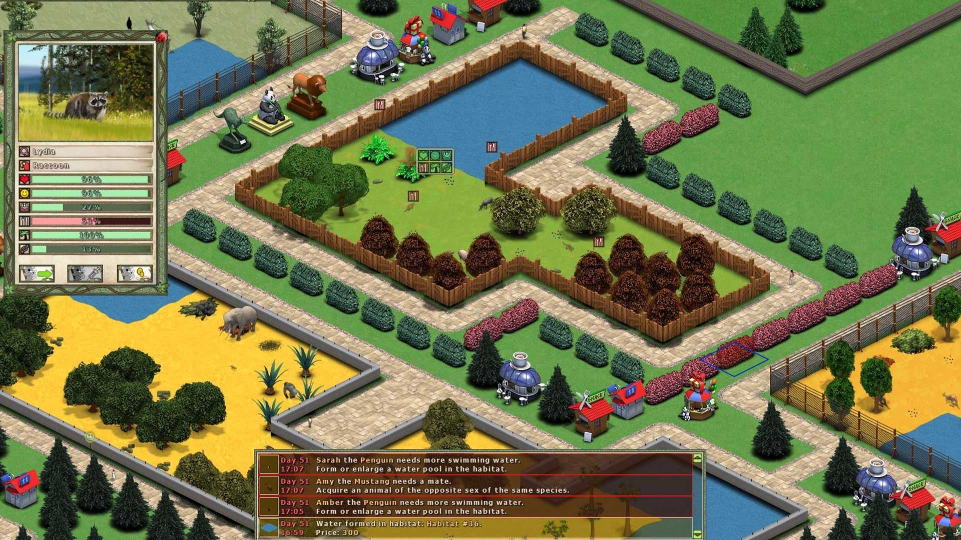 - Construct a well thought out park to best meet the requirements of both the animals and your visitors